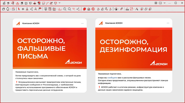 «Шановні підписники, хочемо попередити вас про шахрайську схему, з якою днями зіткнулися наші замовники. Зловмисники розсилають підприємствам електронні листи, що імітують повідомлення від Роскомнадзора, з вимогою припинити використання програмного забезпечення АСКОН і надати персональні дані співробітників», — йшлося у публікації від 8 грудня.