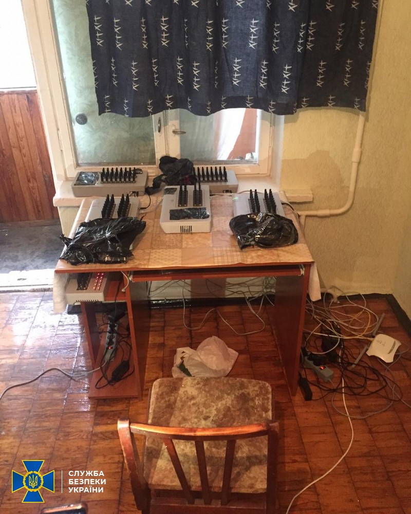 Під час проведення обшуків у Києві та Донецькій області (Покровську) правоохоронці виявили і вилучили комп’ютерну техніку зі встановленим спеціалізованим програмним забезпеченням, телекомунікаційне обладнання, зокрема, 4 GSM-шлюзи ємністю 32 канали кожен, 4 сім-банки ємністю 128 і 32 канали та 6 VoIP-шлюзів ємністю 32 канали. Також вилучено 8 тисяч SIM-карток, чорнові записи щодо реєстрації користувачів соціальних мереж, які розміщували матеріали провокаційного характеру на шкоду інформаційній безпеці нашої держави.